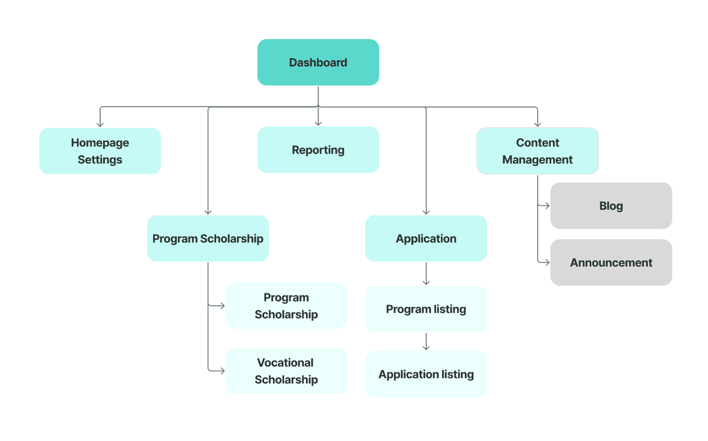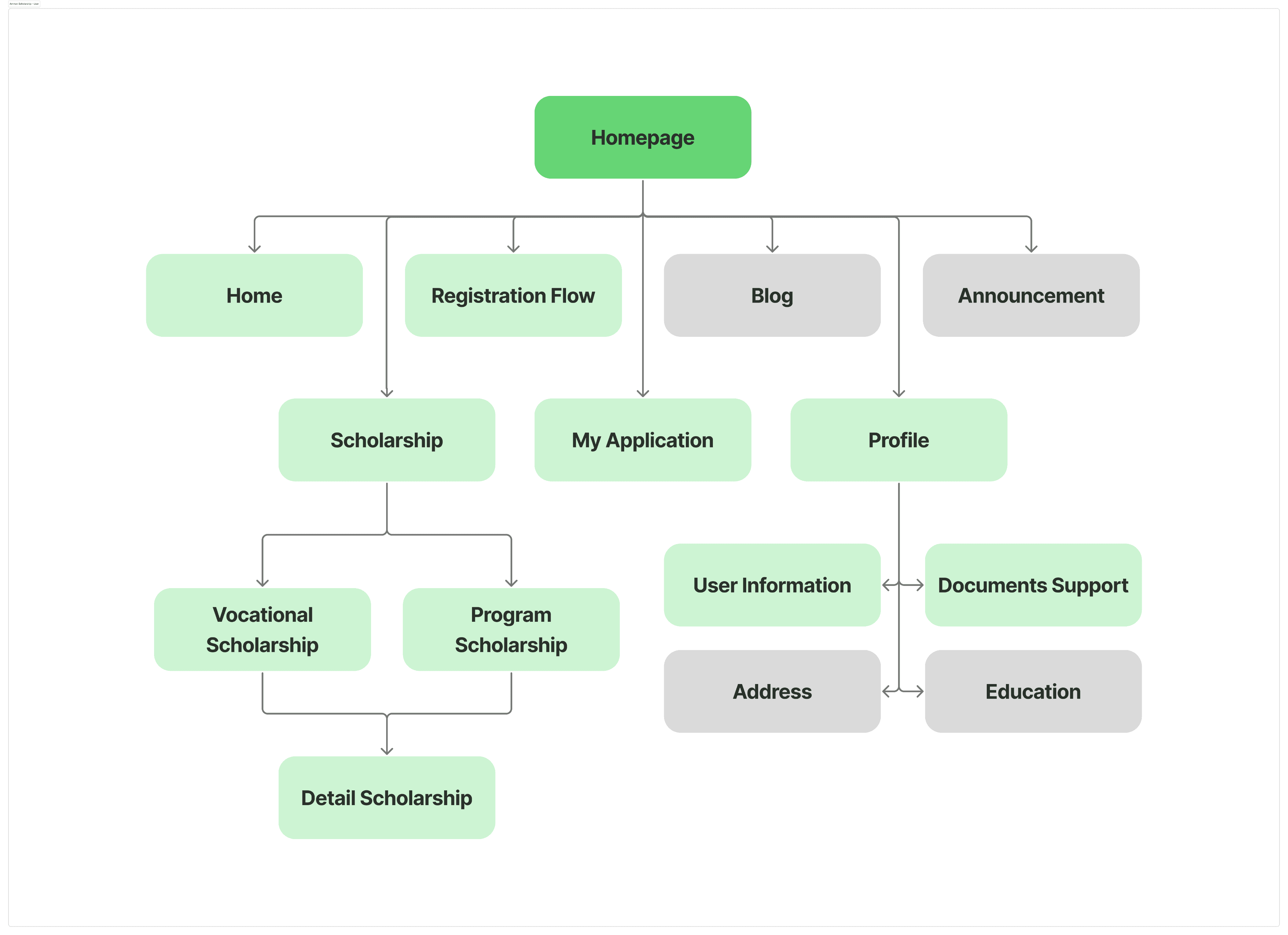 After the FGD and additional sessions with the operations team, I explored new concepts to improve the end-to-end applicant management experience. I designed user flows for both scholarship applicants (users) and admins to ensure a smooth and efficient experience on both sides.