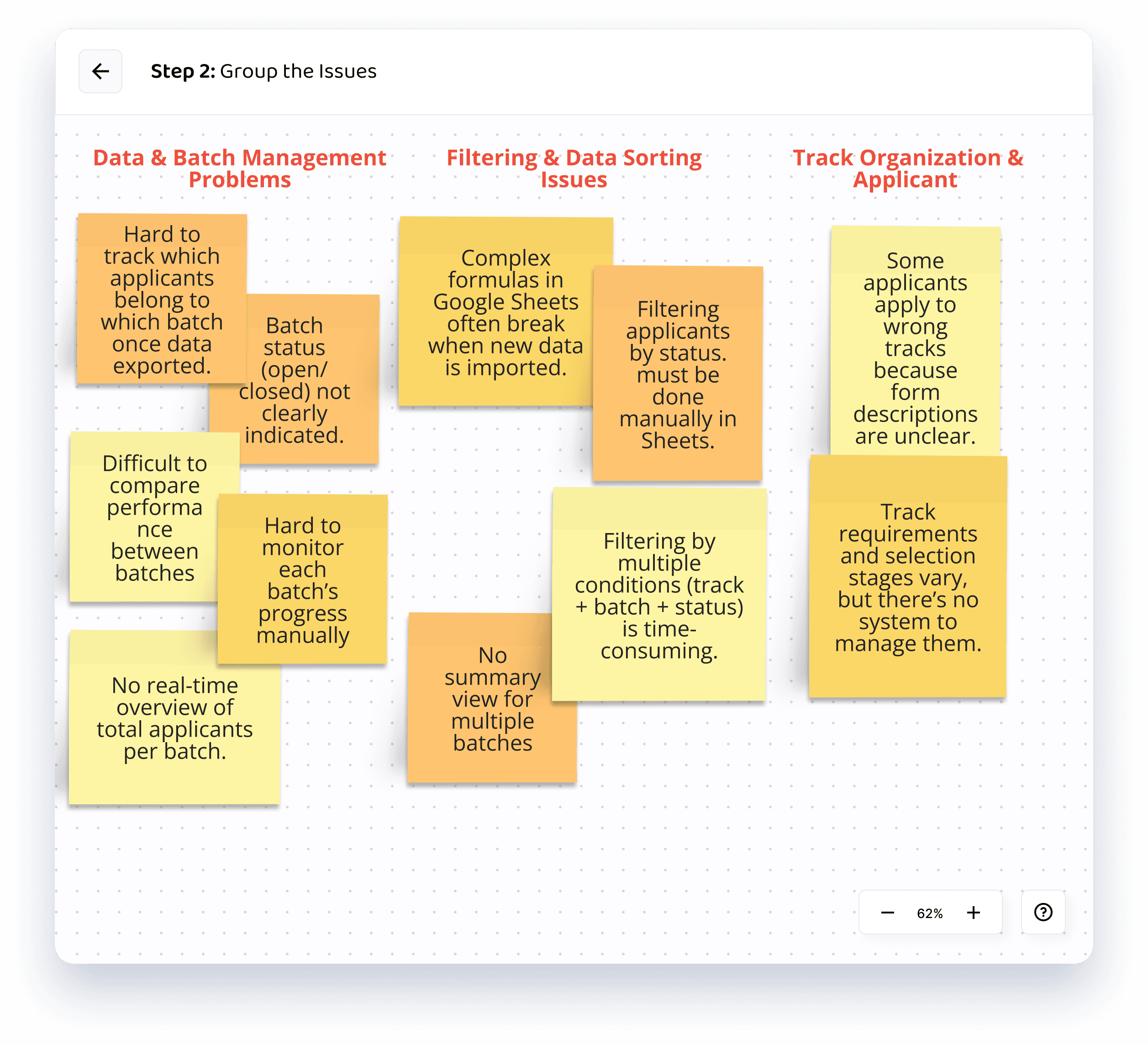 I spent some time with the operations team to see just how tricky it is to filter all the applicants. Seeing the process up close really helped me understand the challenges they face and what they actually need to make their work easier!