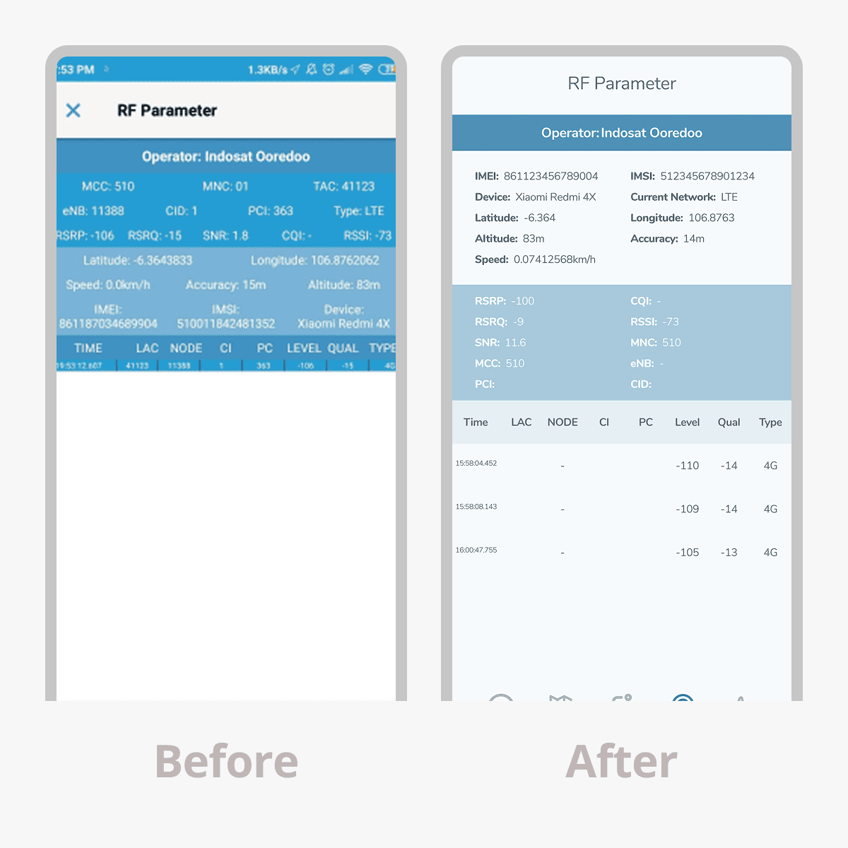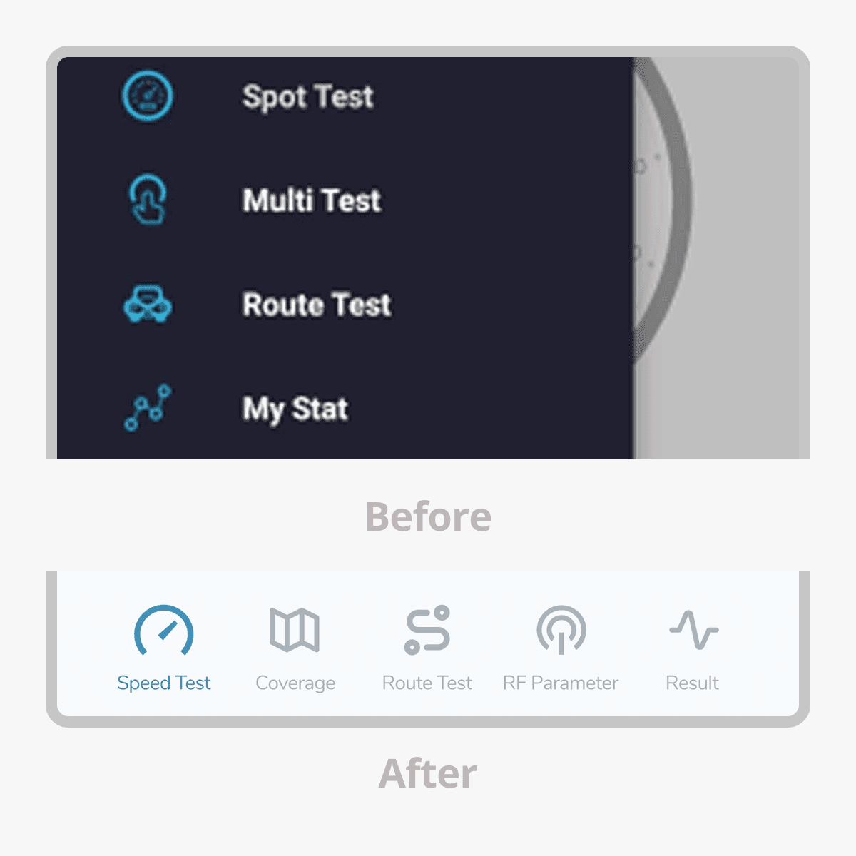 Through the redesign of the Signal Test app, our primary goal was to simplify a previously complex interface and make it more intuitive for general users. We focused on improving readability, streamlining navigation, and presenting technical data in a way that feels approachable and clear.