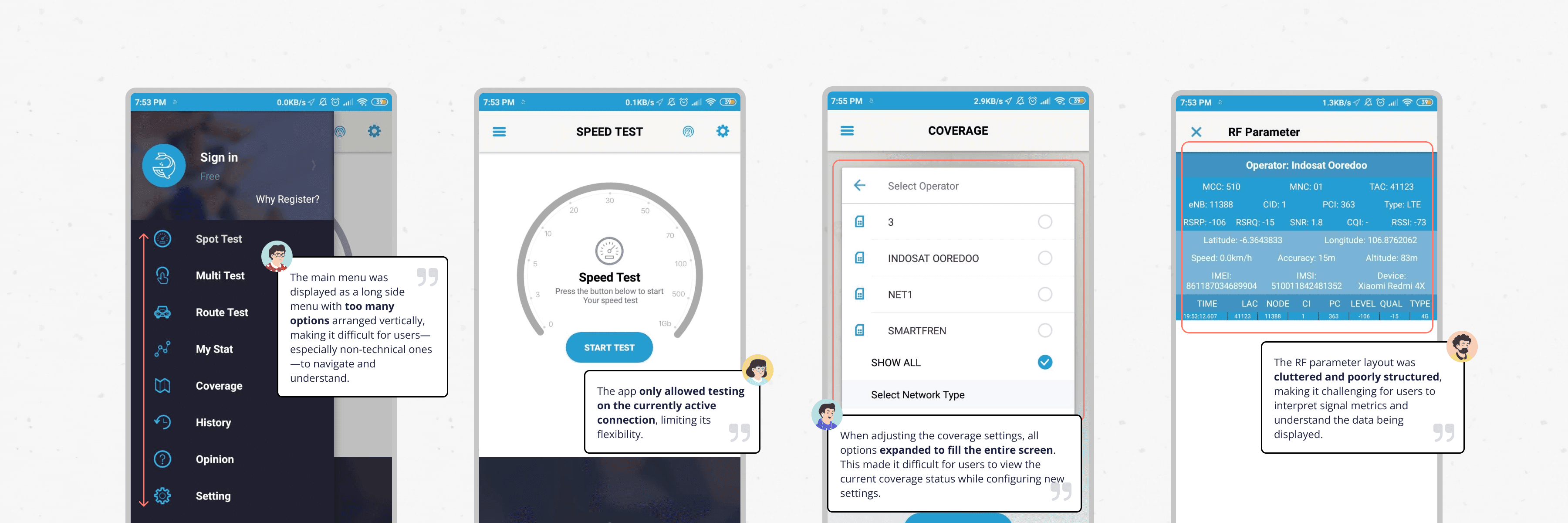 Clear Visual Indicators – Used color coding and icons to help users quickly interpret signal strength and performance status.